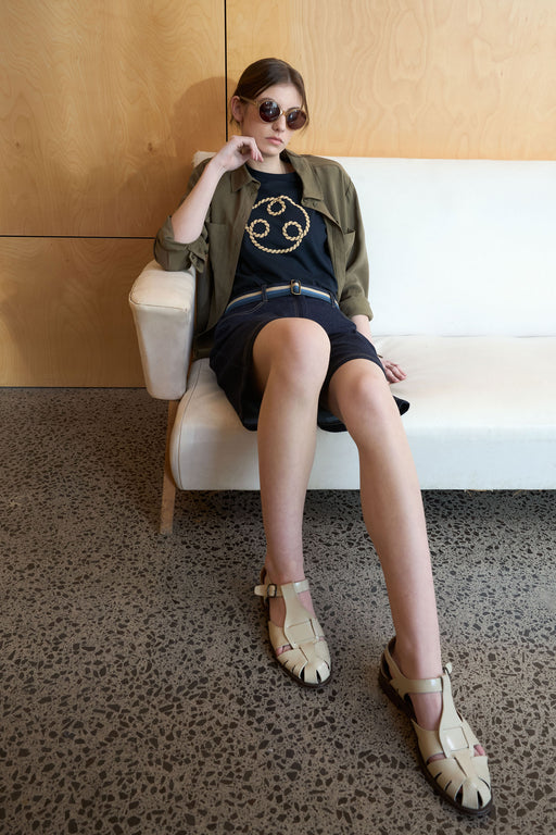 New denim and knitwear styles are feeling especially summery. The marigold Shell polo and ivory Denim walk shorts are quintessential Sylvester spring. We’ve also un-earthed a bunch of archive Kate Sylvester opticals and have given them new life with sunglass lens to complete your timeless summer styling.