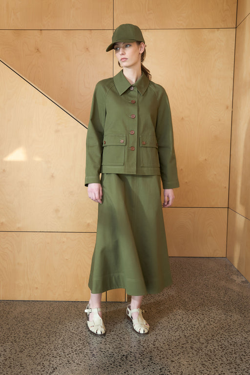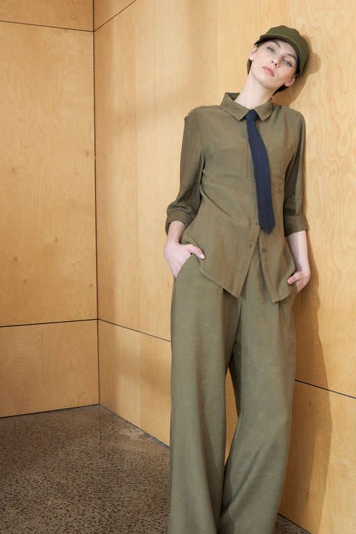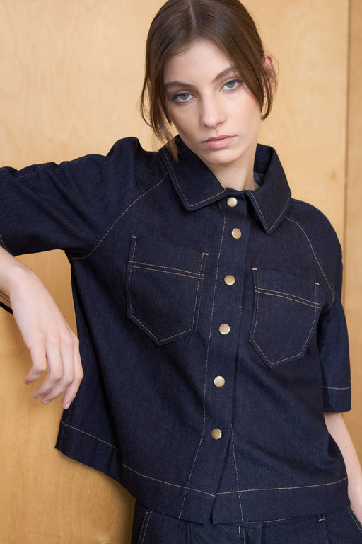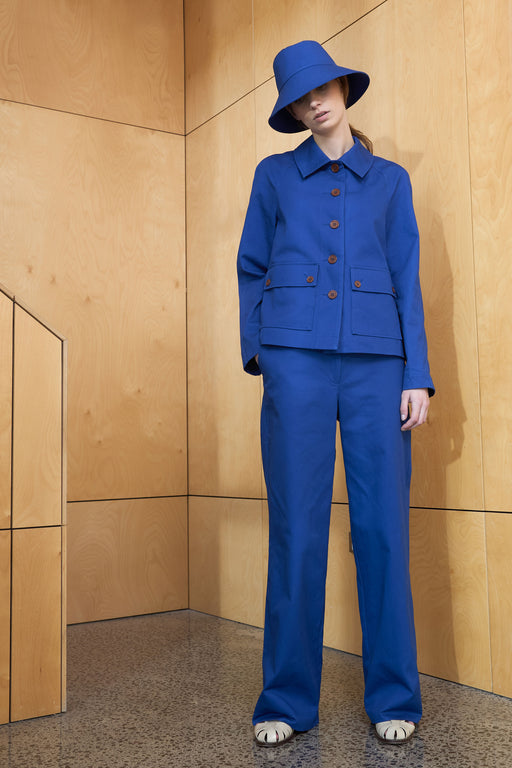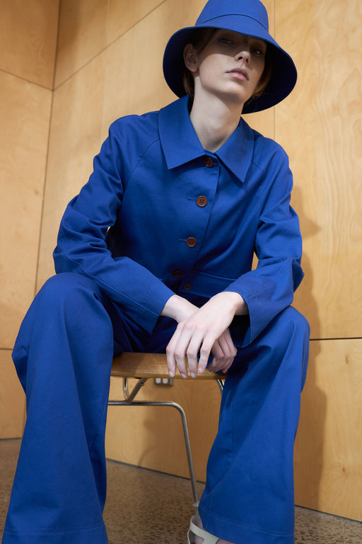Still in France, we’ve riffed with the classic French workman’s uniform featuring utilitarian shapes in vibrant spring blues and greens.