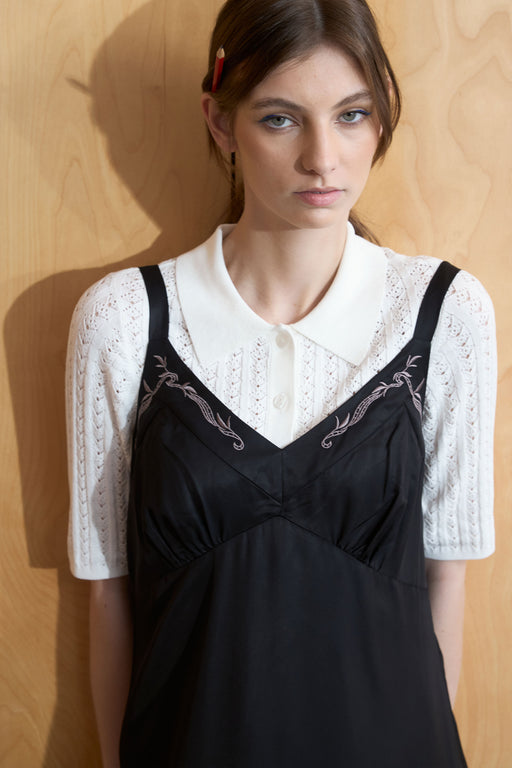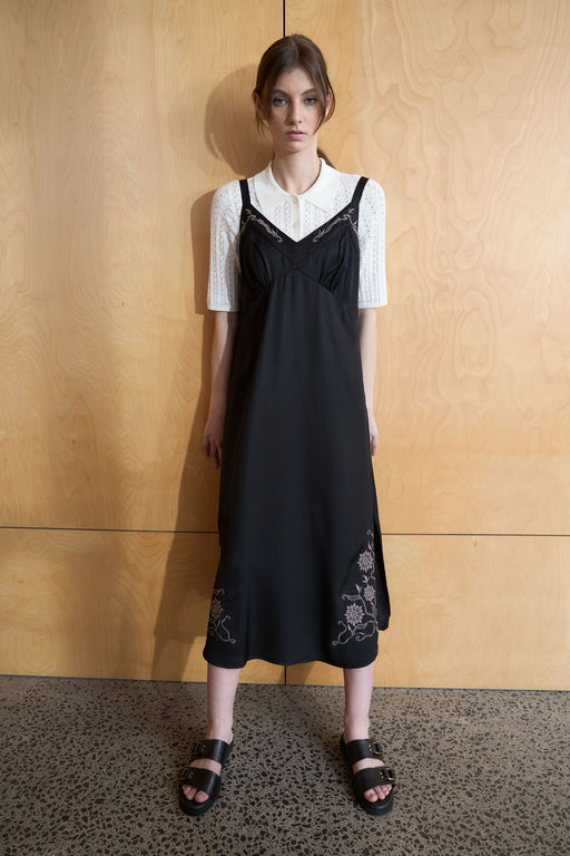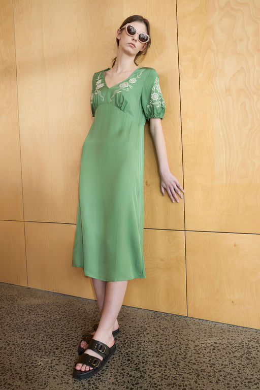 Balancing those masculine elements, our Blooms and Nova stories bring in super feminine slip and dress shapes in fresh ivory and apple green, finished with intricate embroidery and ready for summer party season.