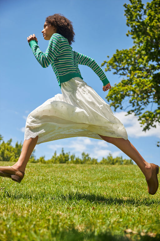 Beach days in our effortless throw on Mini Check gingham and a pop of fuchsia in the Ruched dress pair perfectly with Christmas day. Florentine dresses are made for dancing into the night, bubbles in hand to toast the New Year. The Nautical tank and striped Rugby polo bring Sylvester’s relaxed, boyish charm, pairing effortlessly with the fresh white of our Florentine skirt with its intricate broderie hem.