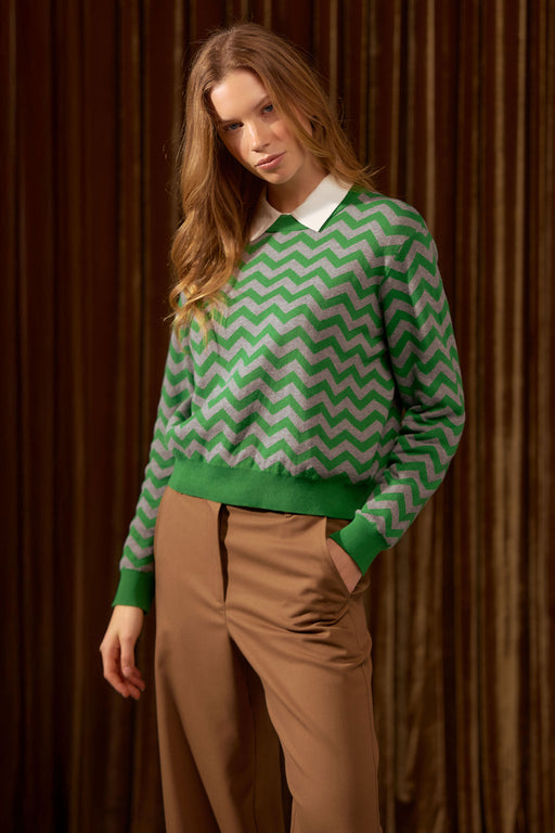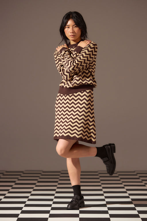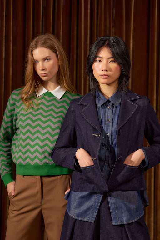 The mountainous forest setting of both The Shining and Twin Peaks is represented by a charming zig zag knitwear story, the design bearing more than a passing resemblance to the carpet in Twin Peak’s infamous red room.