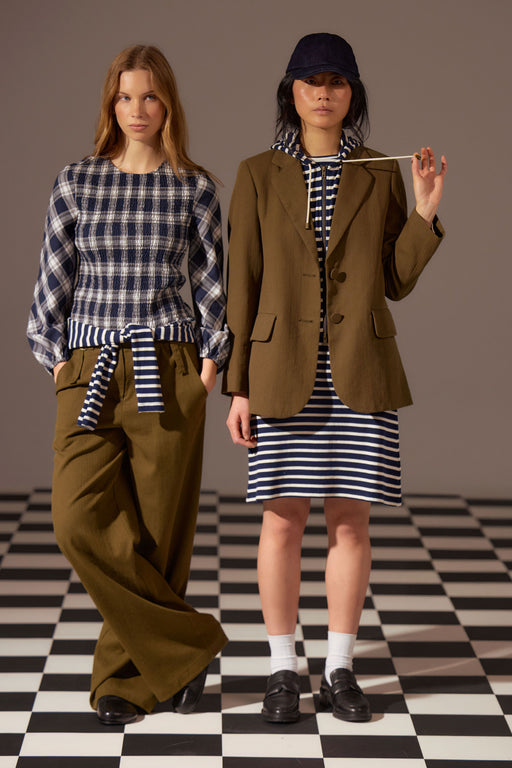 As always, the pieces in this collection are designed for everyone, every day. Our Modern Lovers suiting can slouch through a weekend but is totally ready for business come Monday morning. The trousers, based on the legendary KS Morris shape, have adjustable tabs so you can style them high waisted or low rider and the Wild Rose skirt dress serves as a cute sun frock or midi skirt.
