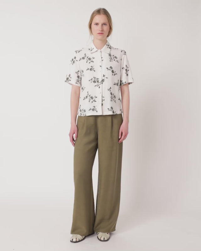 Our Blooms shirt is a fully embroidered classic boxy cut, featuring a fold-down collar, wide elbow-length sleeves, and covered buttons. Pair with our Traveller trousers for elegant comfort.