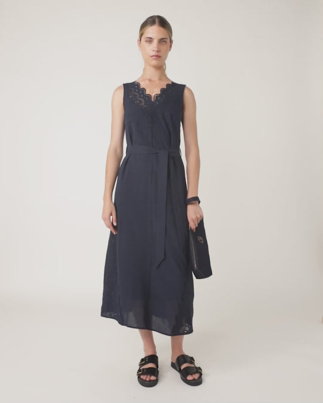 Our Florentine dress is quintessential Sylvester summer. Designed for long days with family under the warm sun or for evenings with a glass of bubbles in hand. Featuring a bias cut, embroidered lace at the neck and sides, and made from 100% cotton. Accessorize with the Huddle necklace and Clutch bag.