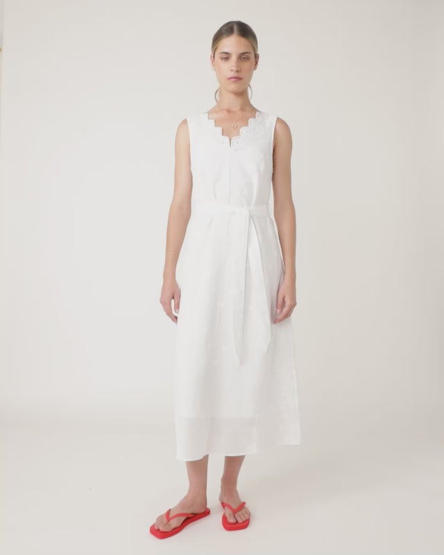 Our Florentine dress is quintessential Sylvester summer. Designed for long days with family under the warm sun or for evenings with a glass of bubbles in hand. Featuring a bias cut, embroidered lace at the neck and sides, and made from 100% cotton. Layer with our Ruched blouson over the top, and accessorize with the Huddle necklace.
