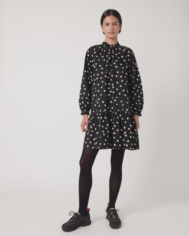 Our Infinity smock dress is a very versatile style that can be worn belted or unbelted. It features shirring at the cuff and neckline and one gathered tier that drops to mid thigh. Great with loafers or trainers or dress up with our Twill jacket.