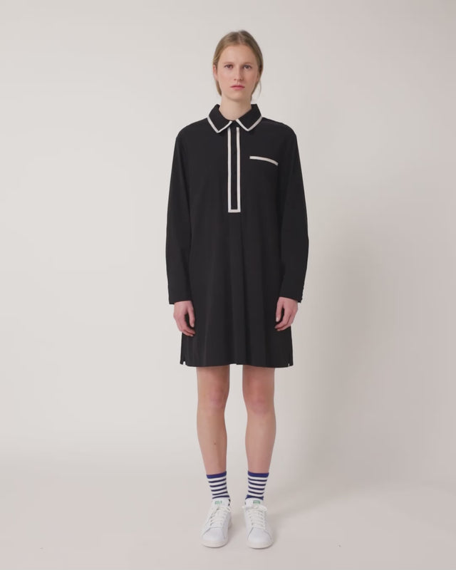 The Marianne smock dress is an effortless shift style that finishes just above the knee. It has a collar and front placket opening featuring charming covered buttons and has long shirt sleeves that look great rolled up on hotter days. It is finished with really great contrast ribbon trim.