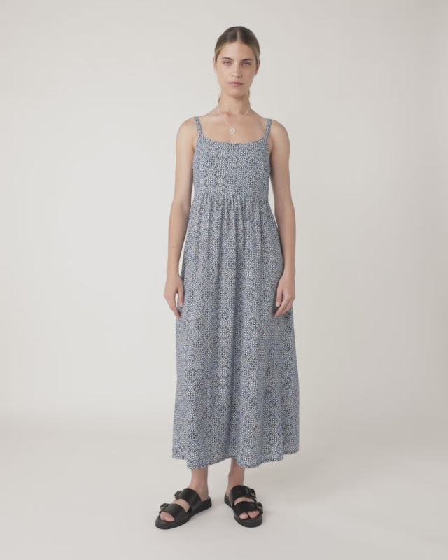 The Mosaic sundress by Sylvester features a super cute mosaic tile print. Other features include a fitted bodice, gathered skirt, and side pockets. The straps on the back can be adjusted for the perfect fit. Layer with our Script t-shirt underneath to complete the look.
