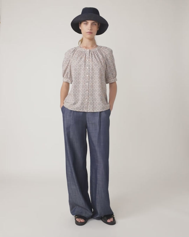 The Mosaic top by Sylvester features a summer mosaic tile print. Designed to be an easy fit top, it has elbow-length sleeves and a round neck with gather detail. Pair your Mosaic top with the Traveller trousers in indigo.