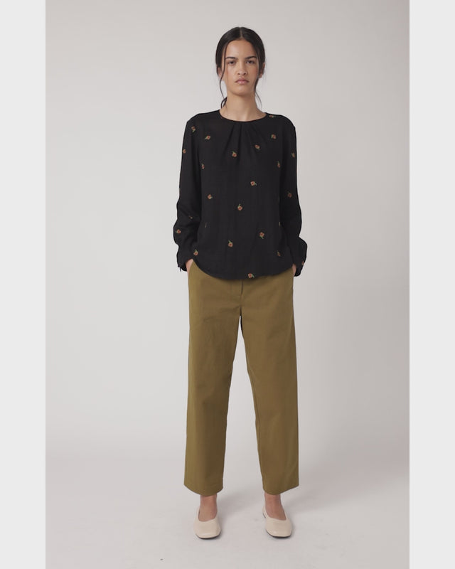 The Pansy top is a long sleeved style featuring a round neckline with tucked detailing. Pair with our Utility trouser to complete the look.