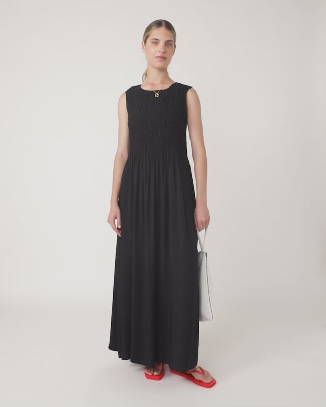 Designed for a divine summer, our Ruched maxi dress will take you to work, Christmas lunch, or partying all night long. Features include a fitted elasticated bodice, a full skirt and useful pockets. Pair with sandals or heels, and accessorize with our Clutch bag and Huddle necklace.