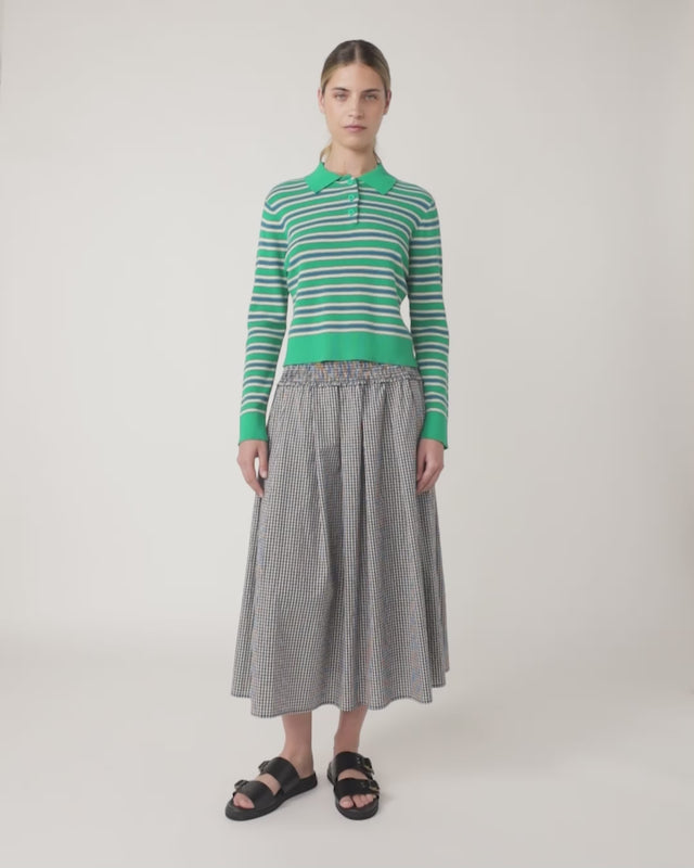 Our Rugby jumper is summer knitwear perfected. Made from 100% cotton, it features a neat fit, a soft rolled collar, and ribbed cuffs and hem. To complete the look, pair your Rugby jumper with the Mini check skirt or Florentine skirt in white.