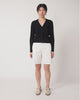 Our Shell cardigan is transeasonal knitwear at its core. Featuring an intricate shell knit stitch, it is a neat fit with a V-neck, button through front and fine rib at the cuffs and hem. We suggest styling your Shell cardigan with our super cute Denim walk shorts and Sister bag.
