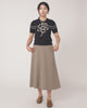 A classic Sylvester knit, the Sketch top is a short-sleeved style featuring our exclusive rose sketch intarsia. Paired here with Twin striped skirt and the Stripe belt.