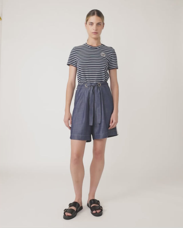Our Traveller shorts are essential summer bottoms. Featuring a soft internal belt for easy adjustment, decorative oversized metal eyelets, and contrast racing stripes down the sides. Pair with the Nautical t-shirt to complete the look.