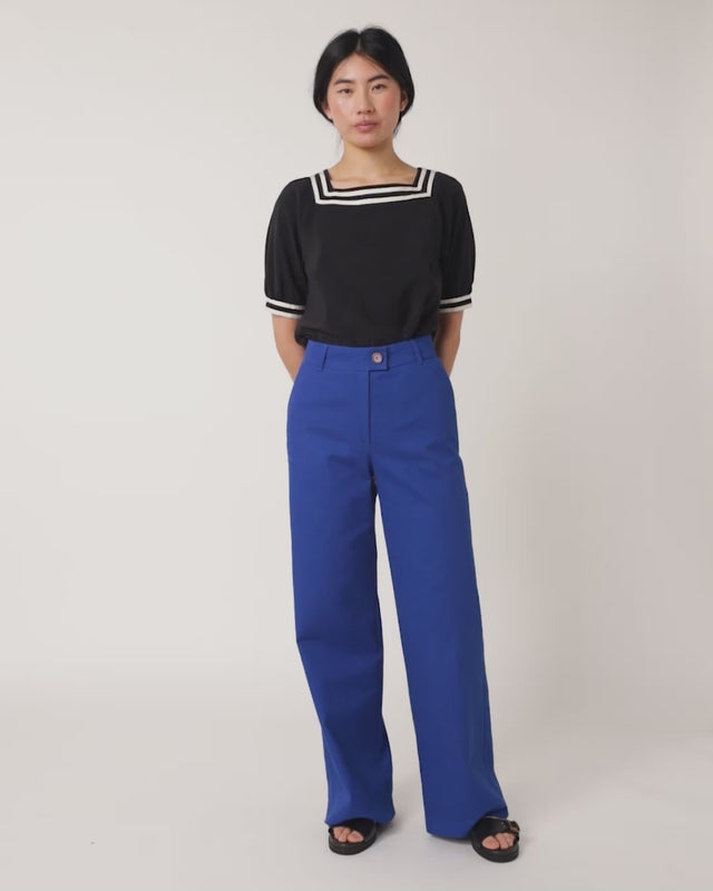 Our Workwear wide leg pants are a do it all pant. Featuring a fully tailored waist with a neat fit, the leg runs wide and is full length. These pants feature a cute contrast button, angled front pockets and patch pockets on the rear for any loose items. The Sylvester Workwear wide leg pants pair perfectly with our Shell vest or Wild rose blouson for an easy spring look. We also love it suited up with matching Workwear jacket or a super cute Denim summer jacket. Our Sylvester Bucket hat and Cap look great with everything.